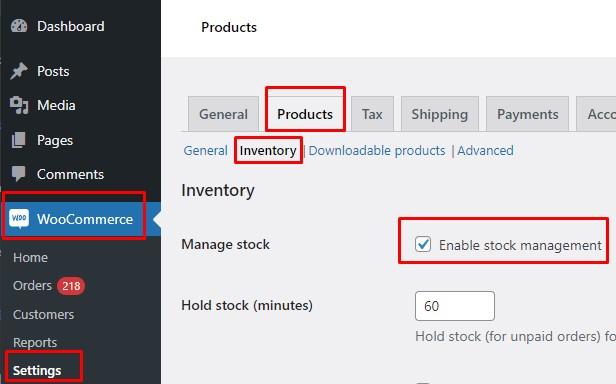 WP Admin > WooCommerce > Settings > Products > Inventory